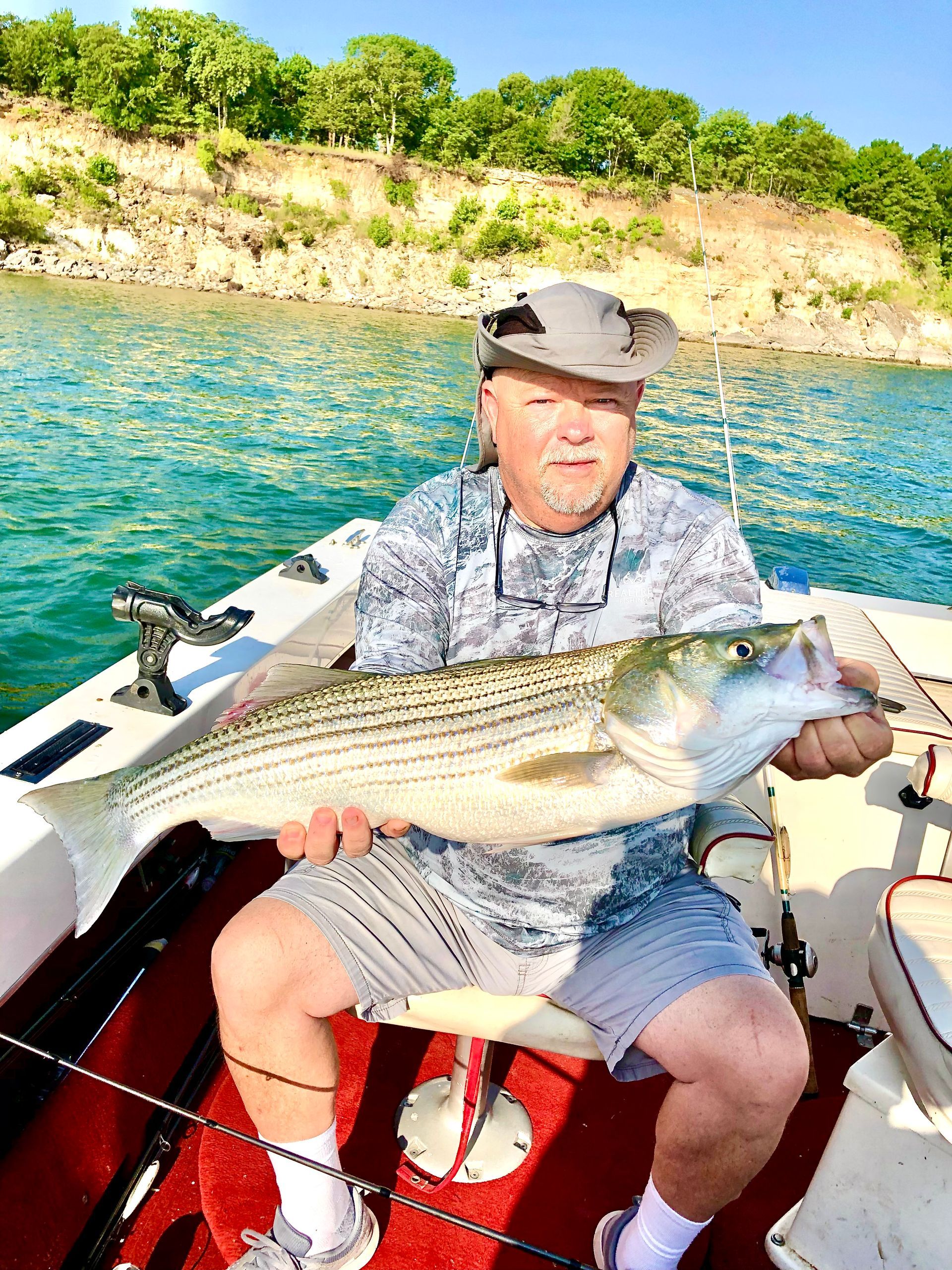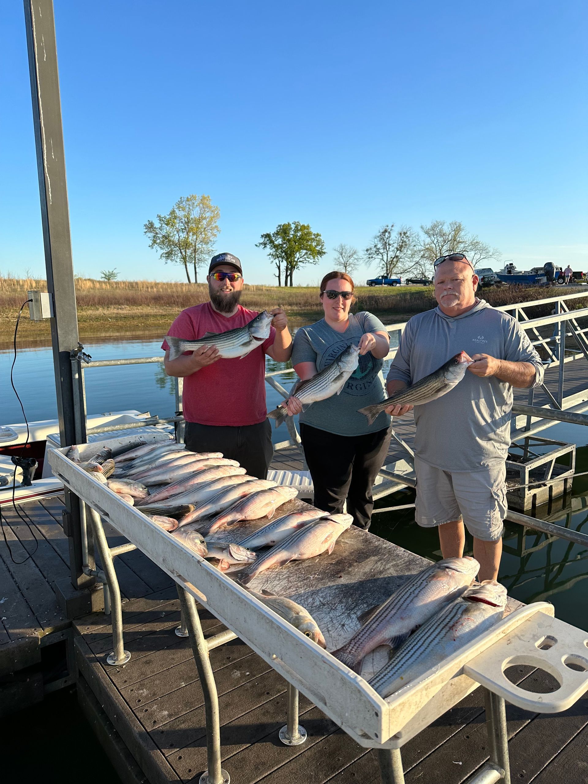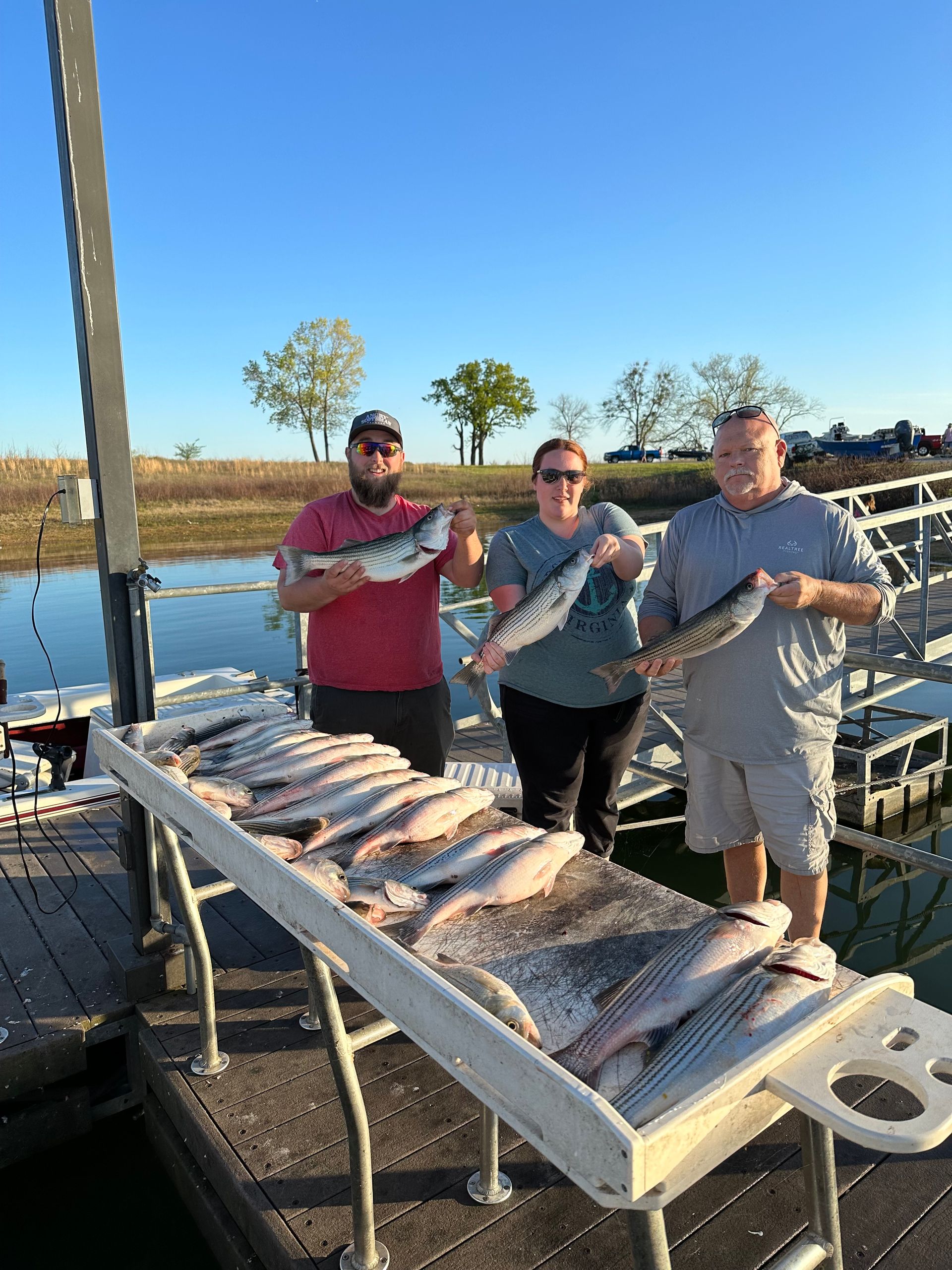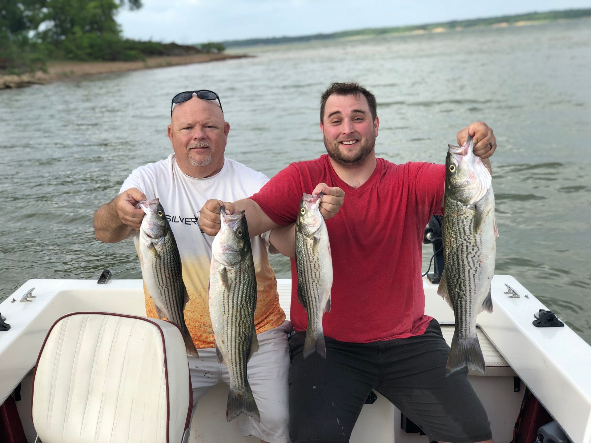 At Albright Guide Service, we fish exclusively for Striper Bass and Catfish. Lake Texoma is a premier fishing destination for both species. Its diverse underwater structure and abundant forage create an ideal habitat for trophy-sized fish. The lake's thriving fish populations, combined with picturesque surroundings make for an unforgettable fishing experience.