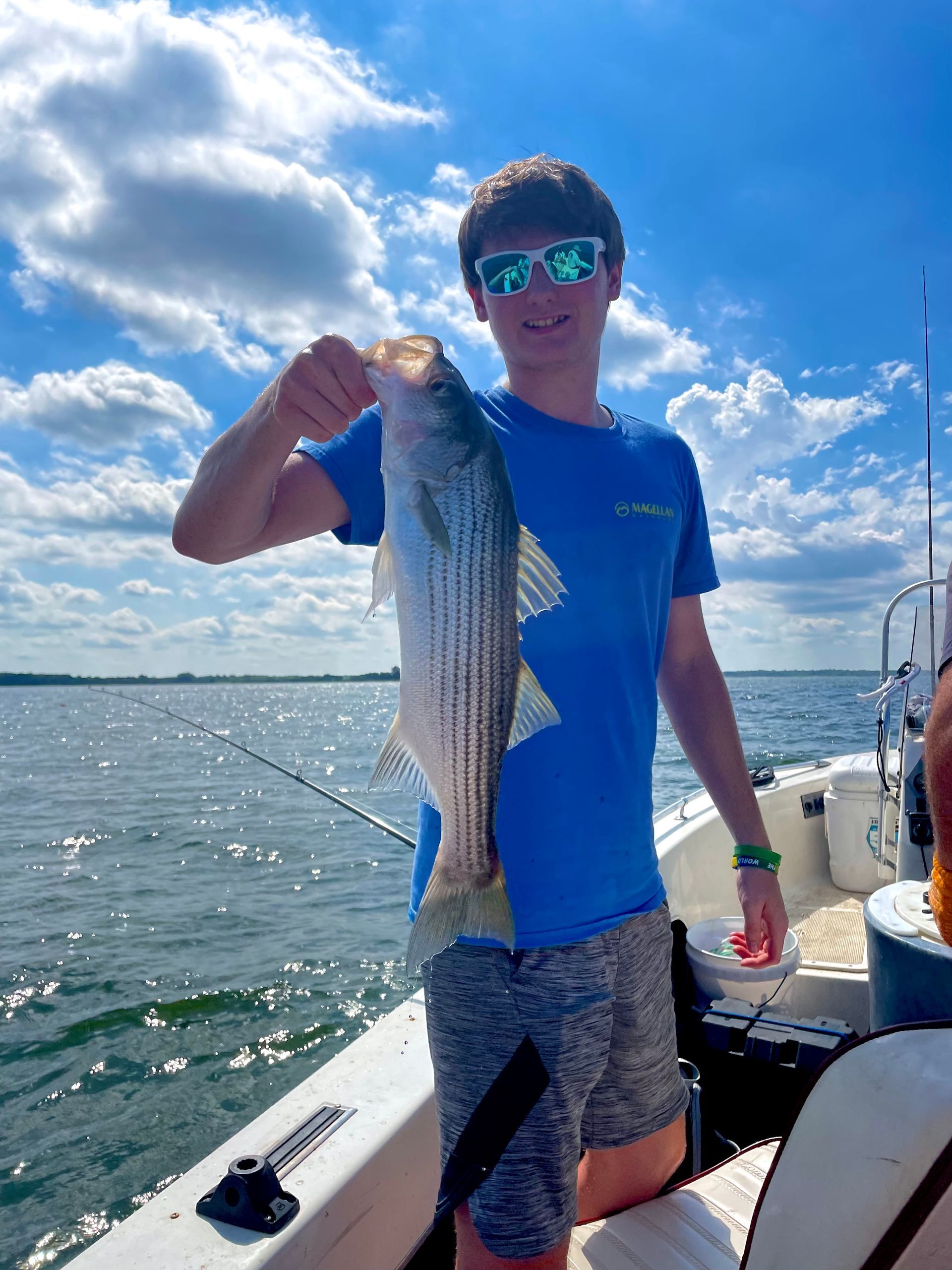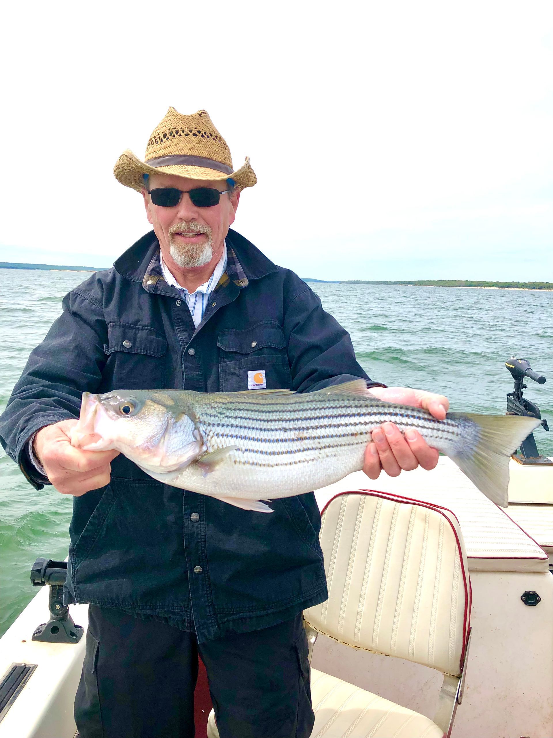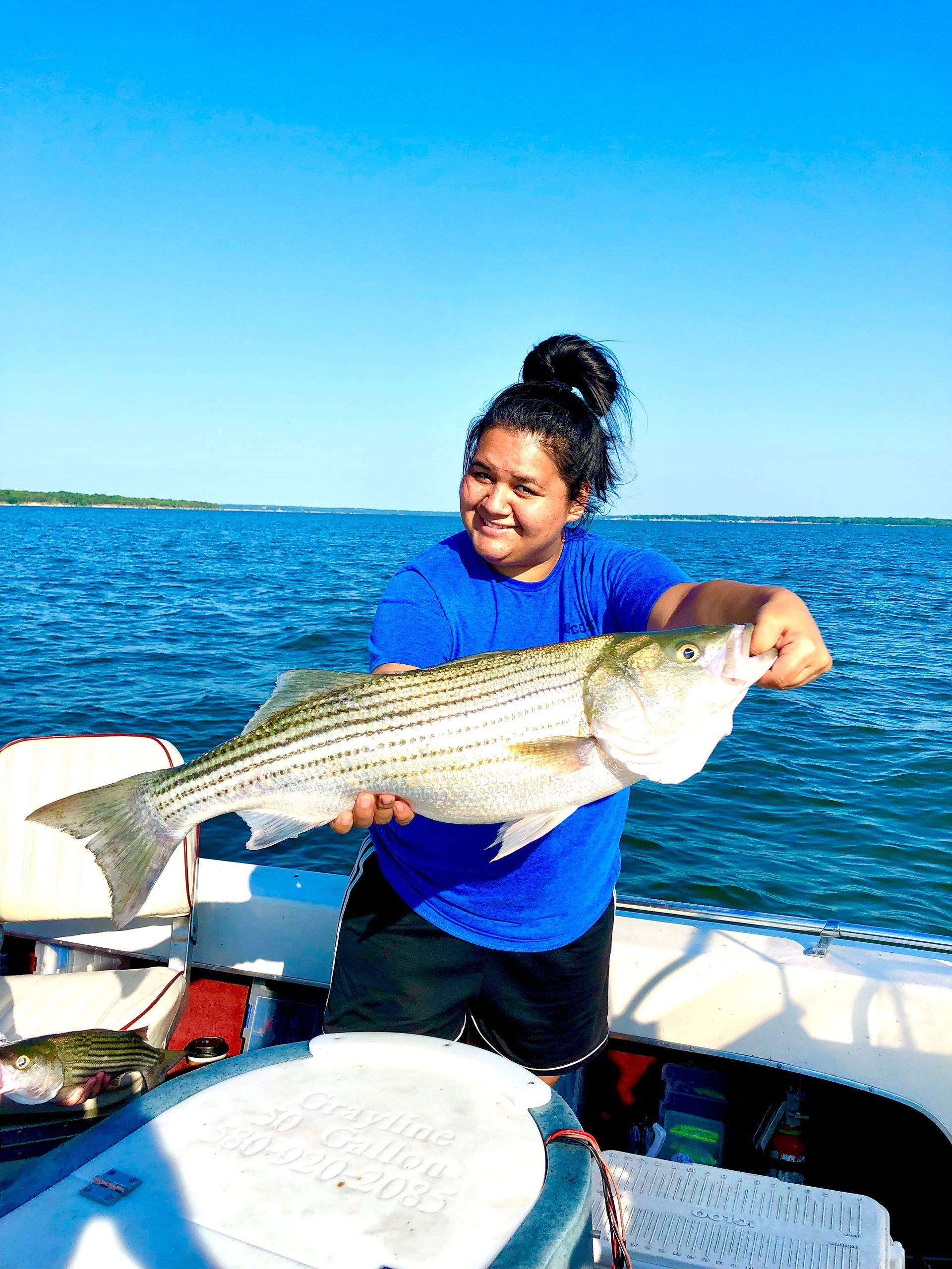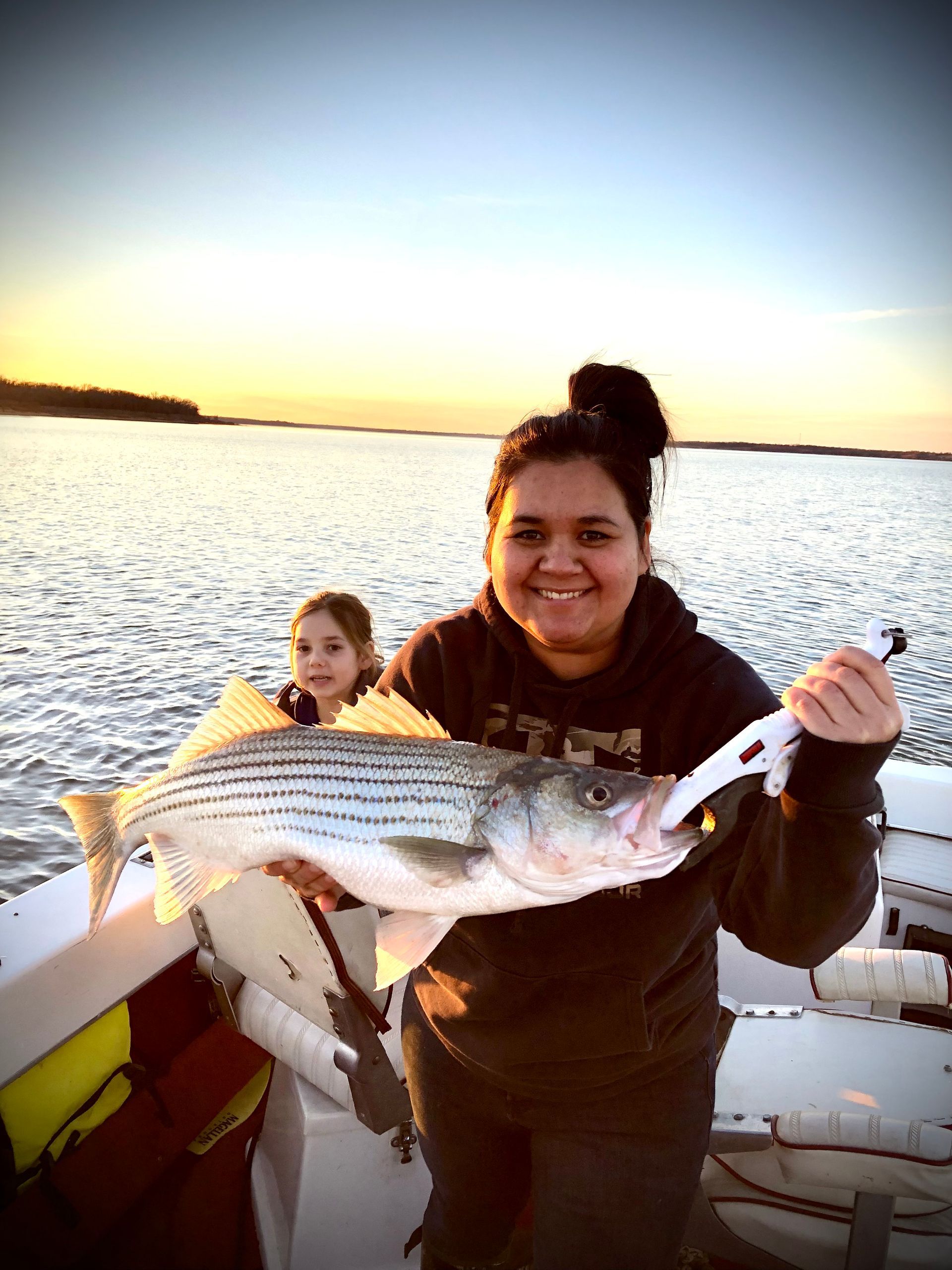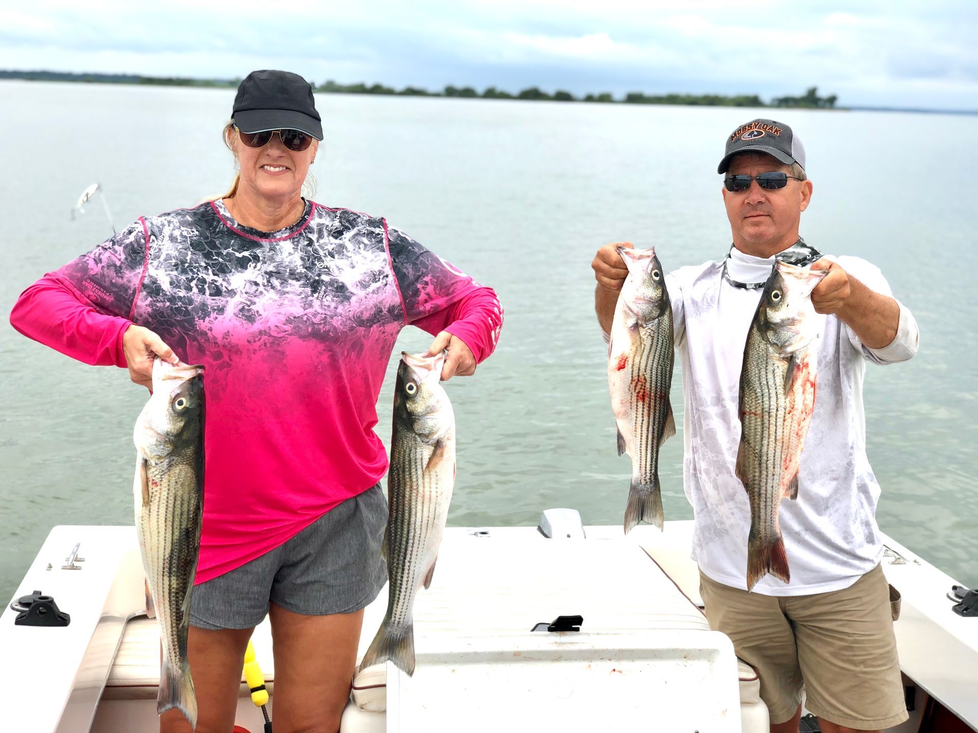 At Albright Guide Service, we fish exclusively for Striper Bass and Catfish. Lake Texoma is a premier fishing destination for both species. Its diverse underwater structure and abundant forage create an ideal habitat for trophy-sized fish. The lake's thriving fish populations, combined with picturesque surroundings make for an unforgettable fishing experience.